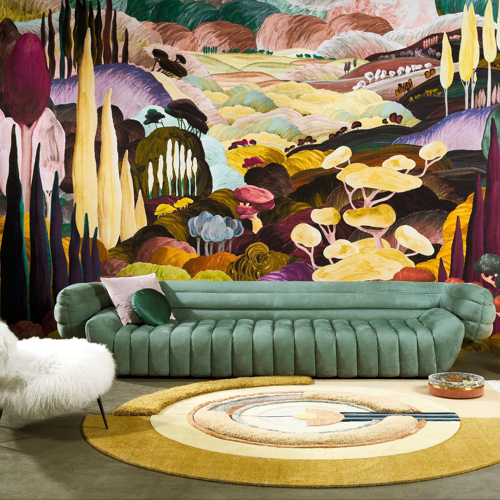 Les Songes Toscans évoque la douceur des paysages italiens à travers une vision poétique et onirique de la Toscane. Ce panoramique textile en chenille crée un univers chaleureux et raffiné où collines, cyprès et lumière dorée s’entrelacent dans une composition artistique apaisante.
