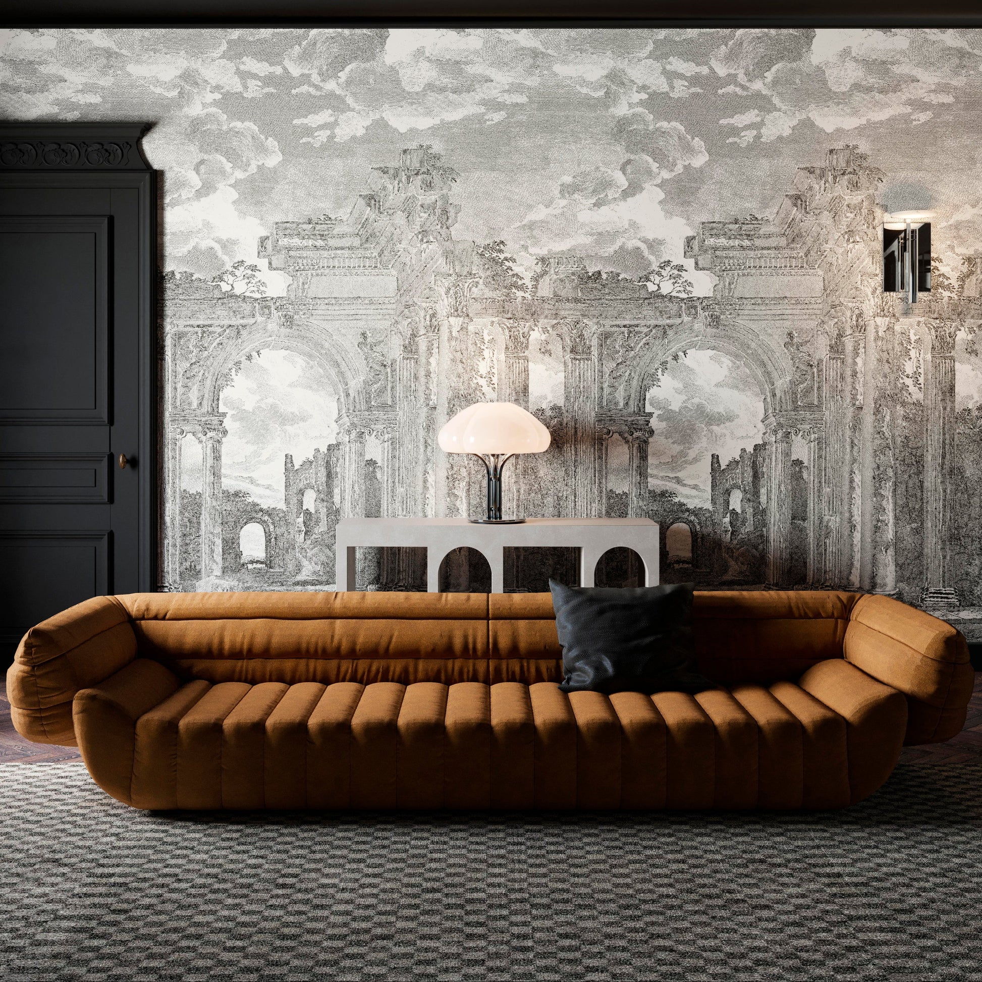 Rovine propose une scène majestueuse inspirée d’une gravure de vestiges grecs anciens : un décor en vinyle sur intissé qui mêle architecture hors-temps et esprit antique. Le rendu impose grandeur et noblesse à votre mur.
