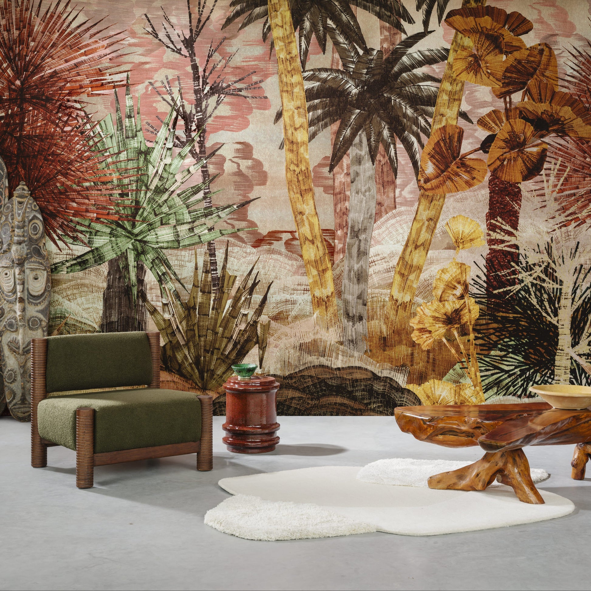 Yasuni s’inspire du parc national du même nom en Équateur, l’un des lieux les plus biodiverse au monde. Ce décor tropical est composé de traits courts et nets, créant un effet graphique puissant, imprimé dans des couleurs chaudes sur un support textile velours doux. :contentReference[oaicite:1]{index=1}